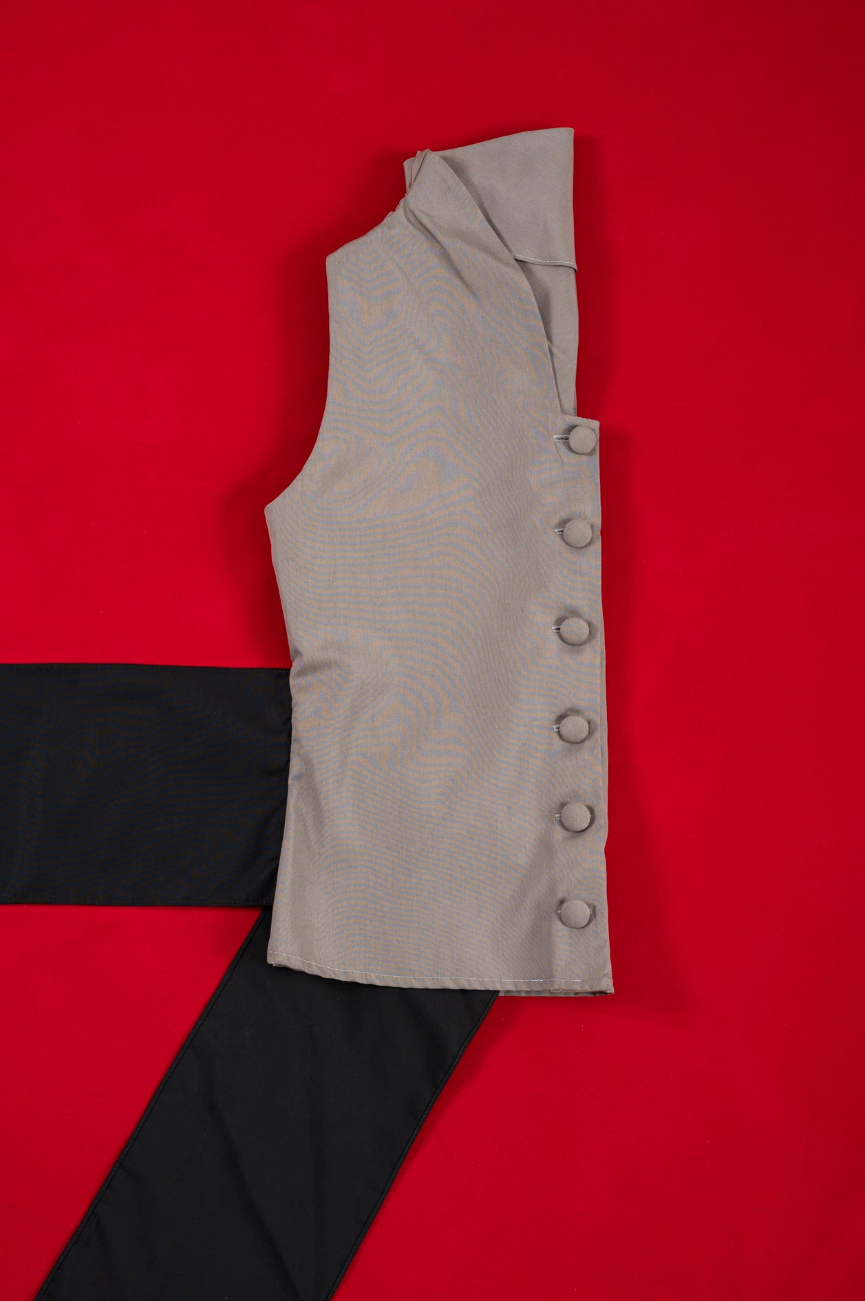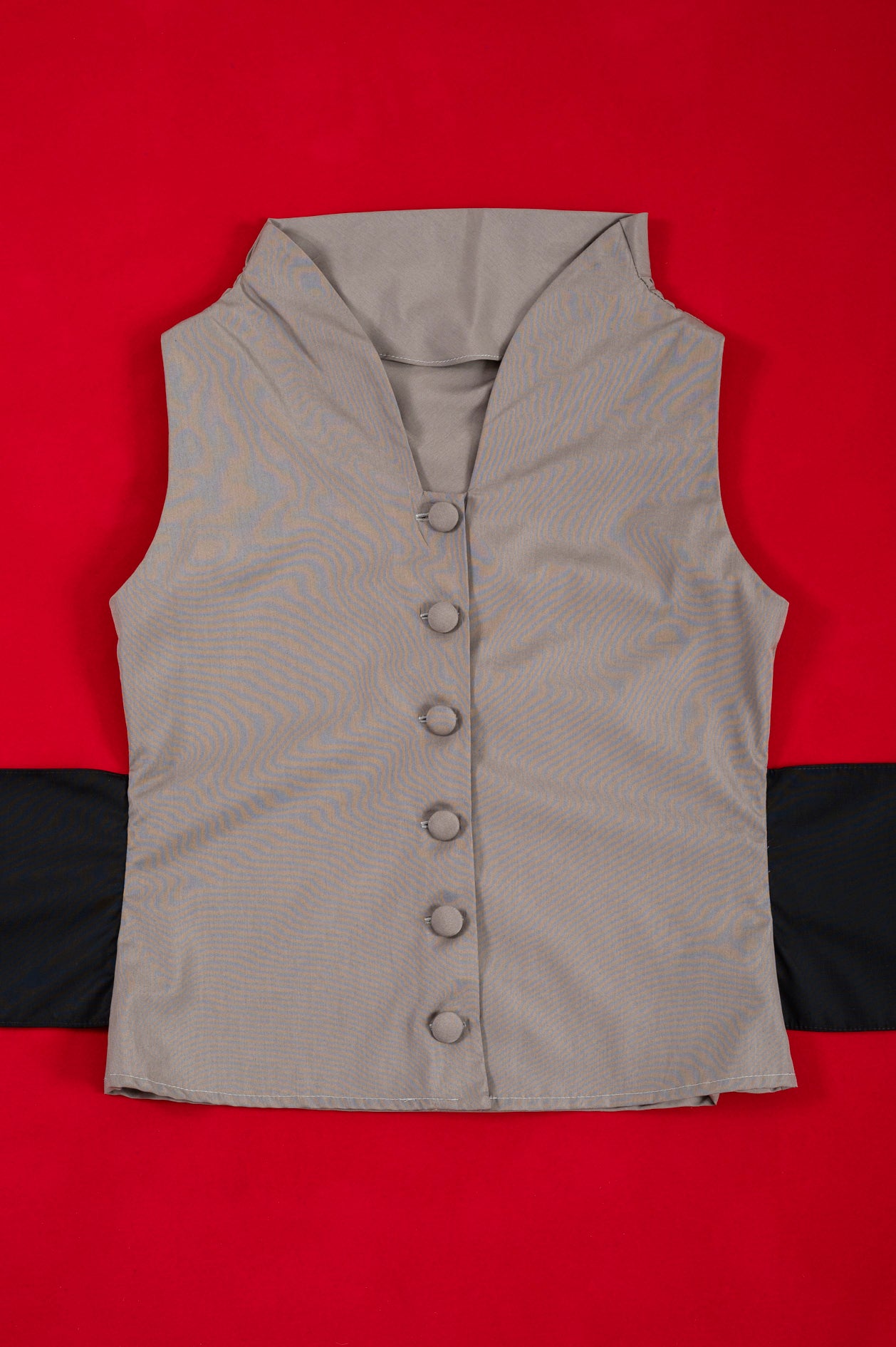 High Neck Blouse, with long straps for bow tie and multi wrapping ways, can be worn front or back, button closure at the back.