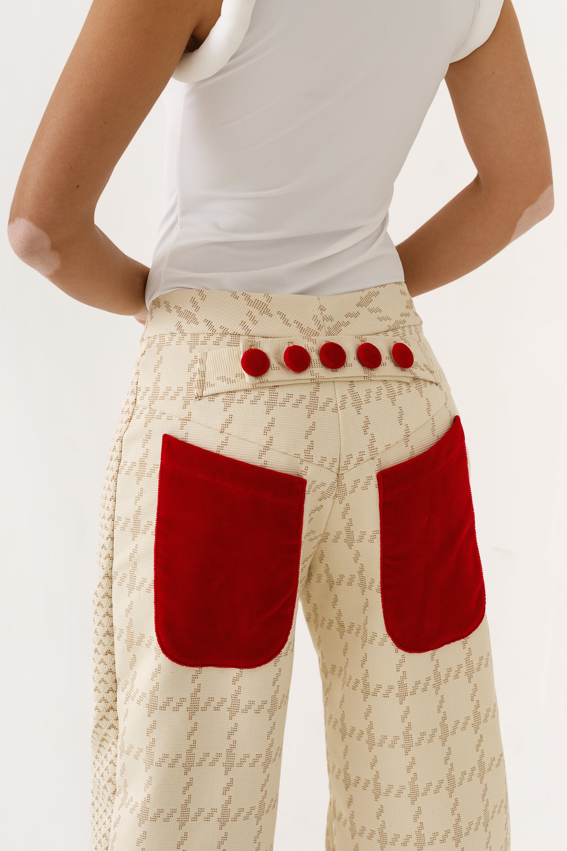 These sleek, straight-cut trousers feature a unique diagonal cut on the front leg, adding a bold, modern edge. Designed for both style and functionality, they include an adjustable strap at the back waist for a customizable fit and angled extra-long pockets for a striking yet practical detail. Finished with a front zipper closure, these trousers combine contemporary design with effortless wearability.