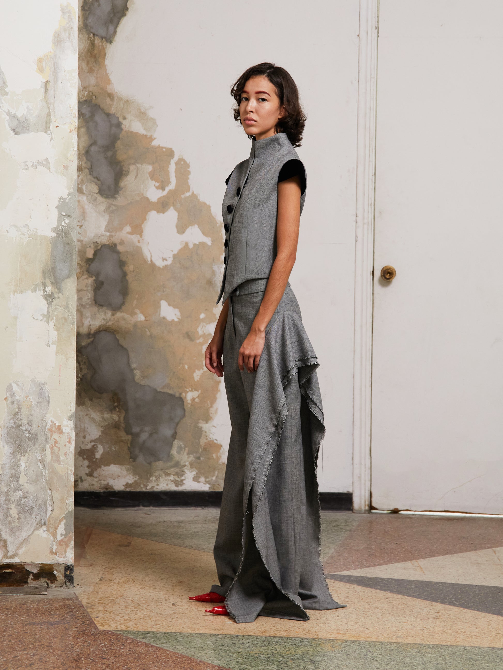 Crafted with our iconic swan neck silhouette, the Medusa Top exudes elegance and refinement. Graceful cap sleeves and a front closure with velvet-covered buttons make this piece a true standout.
