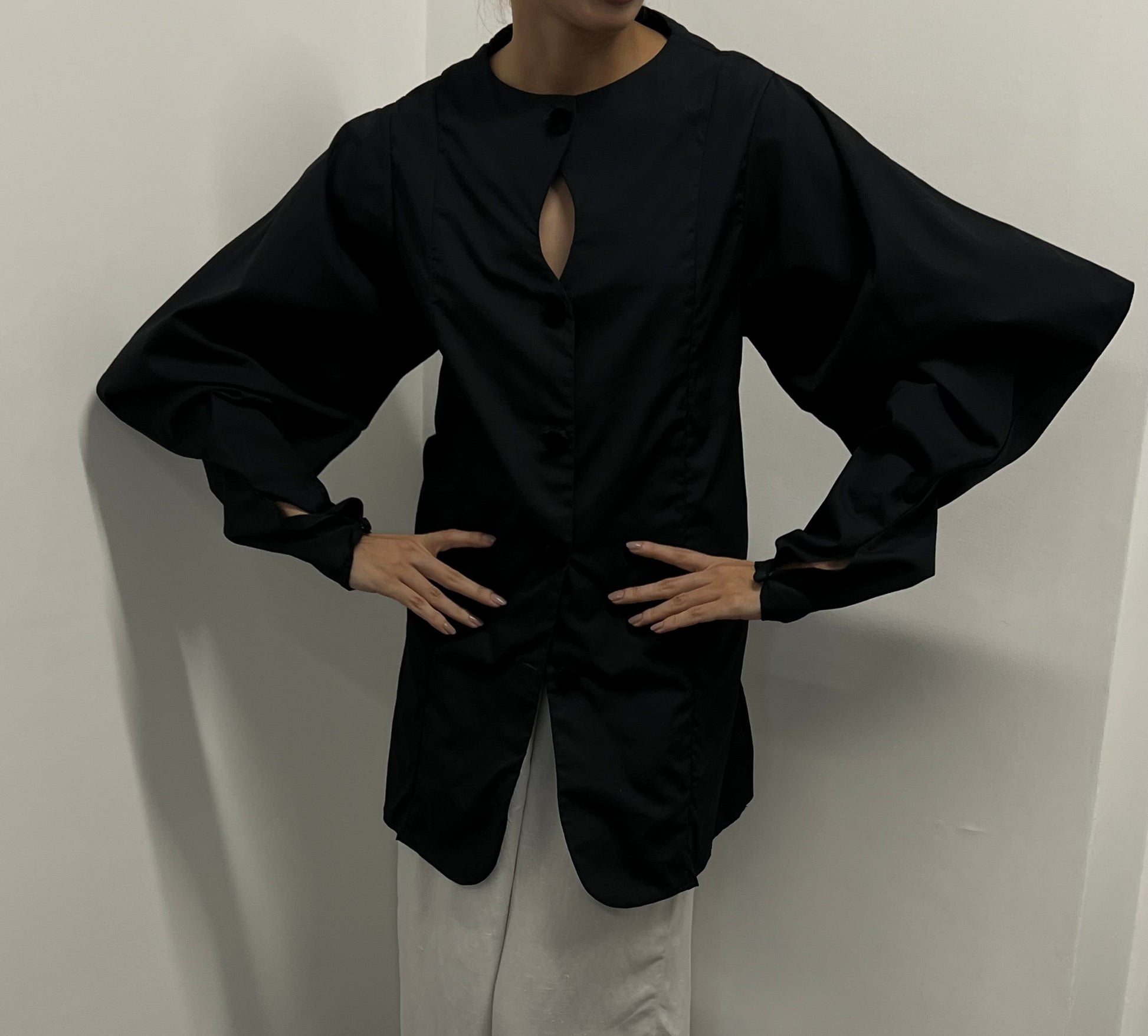 Oversized shirt, featuring our signature hourglass motif at the front, with button closing and a distinctive winged  triangular sleeve.
